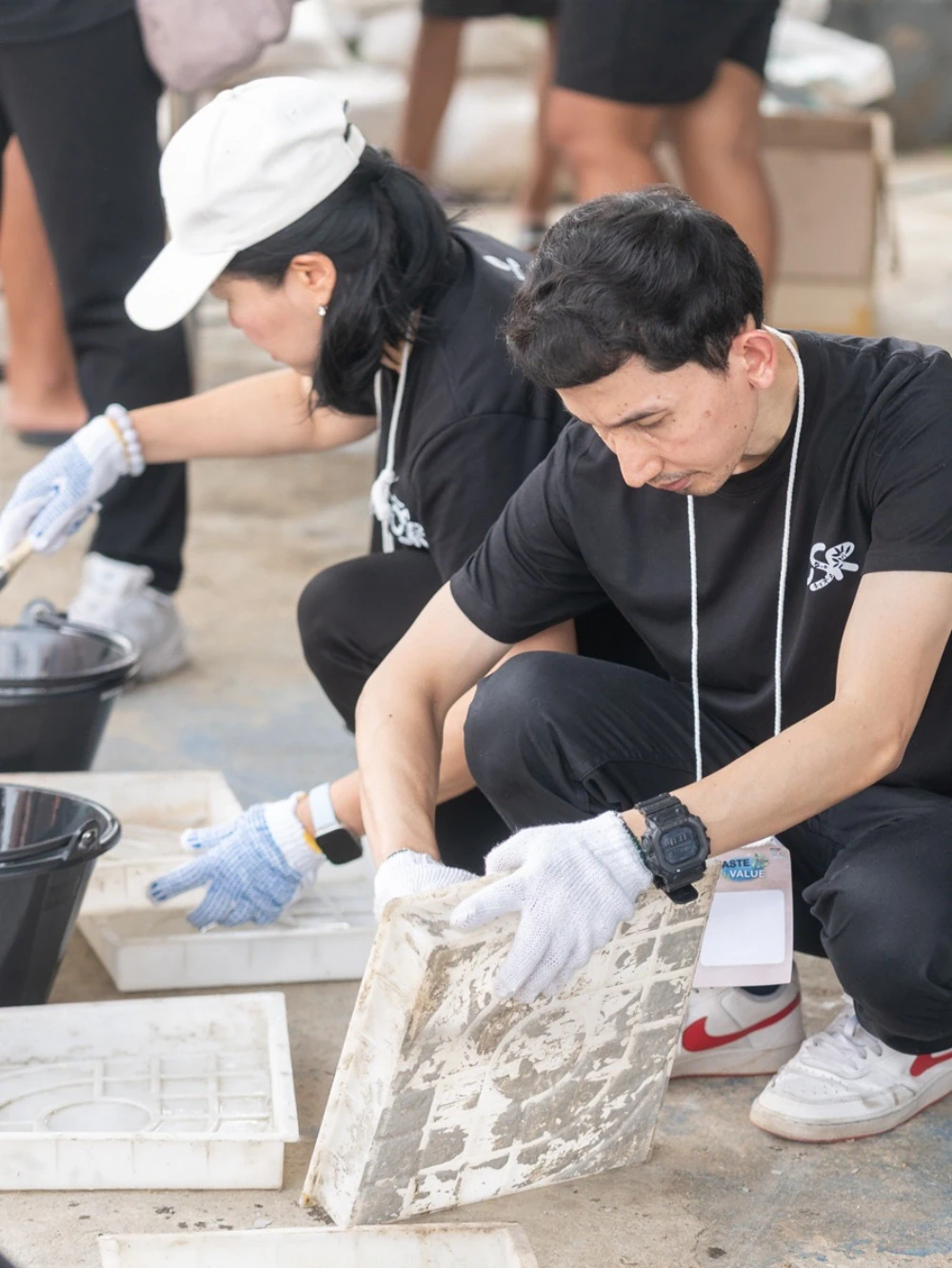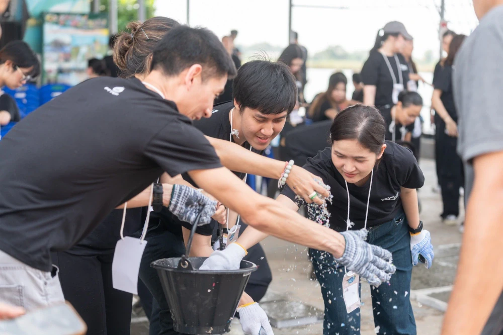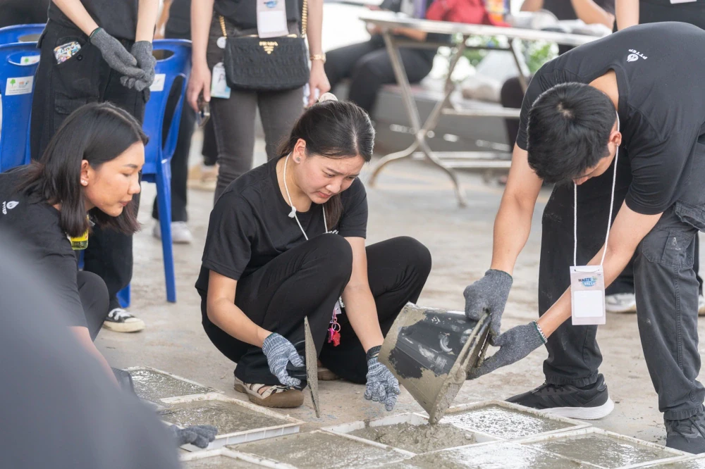 PTT Exploration and Production Public Company Limited (PTTEP) organized the “Waste to Value” volunteer activity at Baan Khun Samut Chin coastal village, Samut Prakan province. About 50 PTTEP employee volunteers collaborated with the Baan Khun Samut Chin eco-tourism group to transform plastic waste—such as plastic bottle caps gathered from employees’ households and PTTEP headquarters, as well as discarded plastic bottles collected from the village area—into paving blocks for the community’s walkway and recycled keychains sold to generate income for the eco-tourism group. The activity not only reduced plastic waste by turning it into value-added products but also helped the community save on commercial flooring.